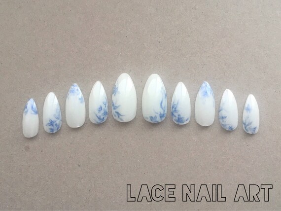 Soft China Press On Nails White Blue Fine China Hand Etsy